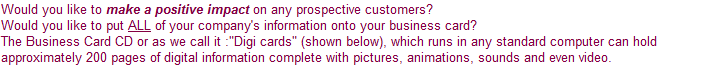 The 21st Centuary's idea to business cards. Get your's TODAY and see what an impact you will make in your industry .... Be the new kid on the block with the latest toys .....