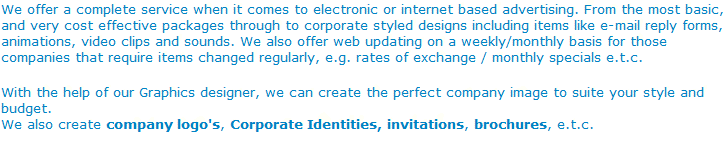A web site is an important SELLING TOOL. More and more people are looking for answers on the web. Advertise your web address on your company vehicles, invoices e.t.c.
